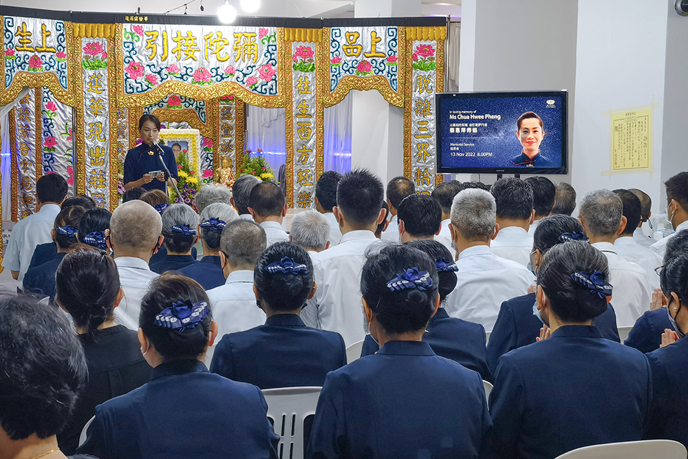 On the evening of November 13, 2022, a total of 280 friends-in-dharma gathered physically at the wake in Bedok as well as online to attend the memorial service. (Photo by Yaw Huey Xin)