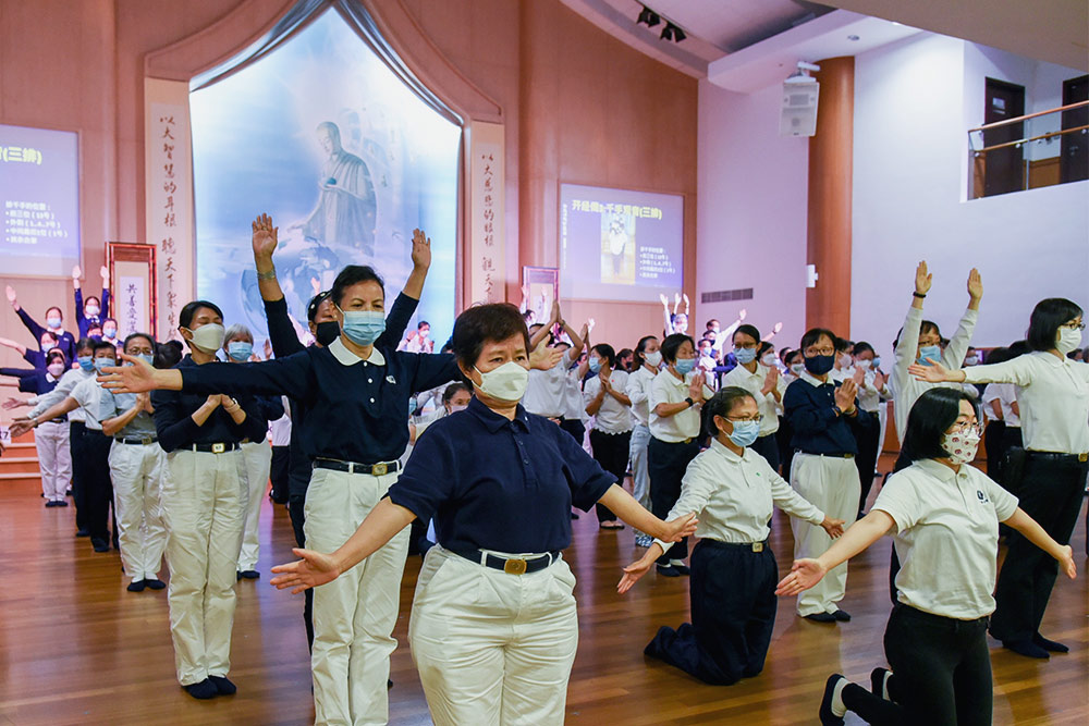 口到、手到、心到,人人用心排练,让手势动作到位,期盼12月与全球慈济人一起成就庄严法会。(摄/ 曾美珍)