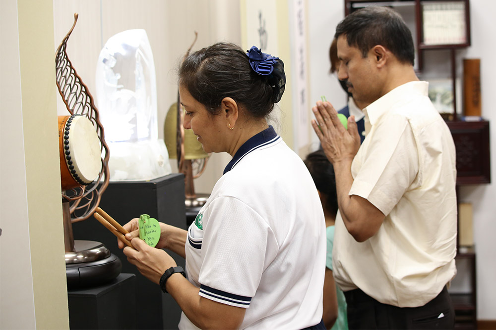 将感动化为行动,苏希拉和亲友每人领了竹筒,也诚心写下祈愿。她们表示,会以小钱行大善,减少吃荤食,奉献一己心力。