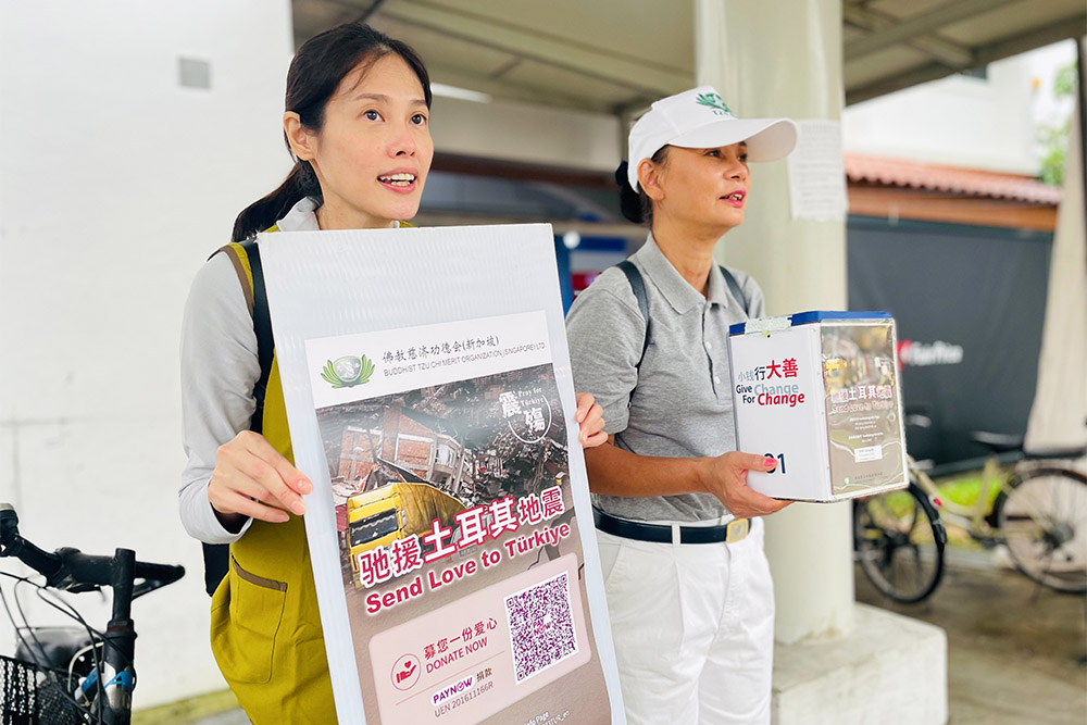 土耳其强震后,慈济即刻启动国际人道援助机制,展开赈灾物资调度与后续救援工作。同一时间,全球慈济志工也在各地展开募心募爱行动,慈济功德会(新加坡)积极向政府申请募款准证,募款活动为期月余,直至3月31日。募款方式包括线上捐款、亲临慈济各志业体捐款等,志工也在3月5日及19日,利用星期日的假日时间,走上全岛街头向民众劝募。